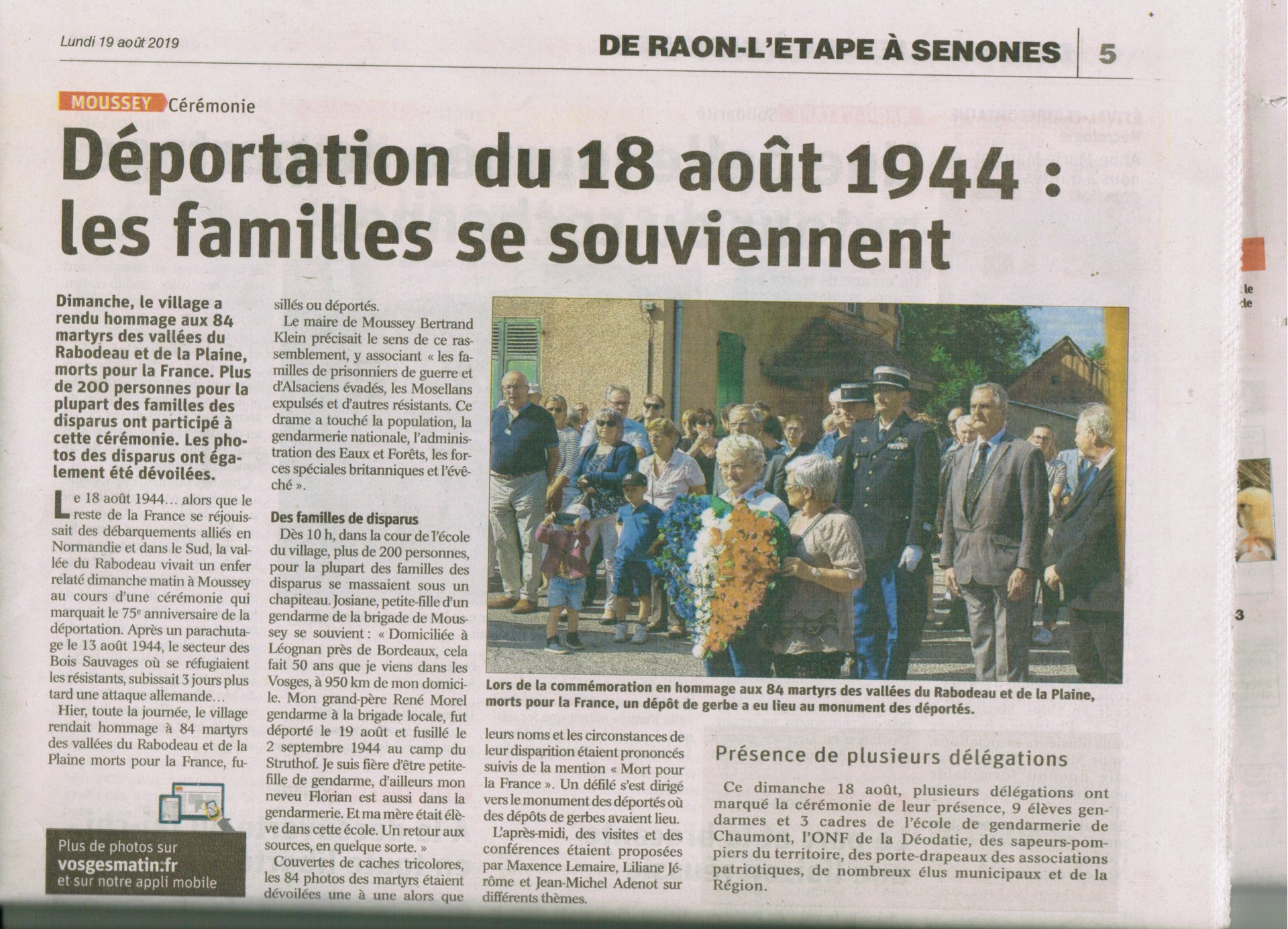 * dimanche 18 août 2019 : conférence à Moussey pour le 75ème anniversaire de la première déportation.